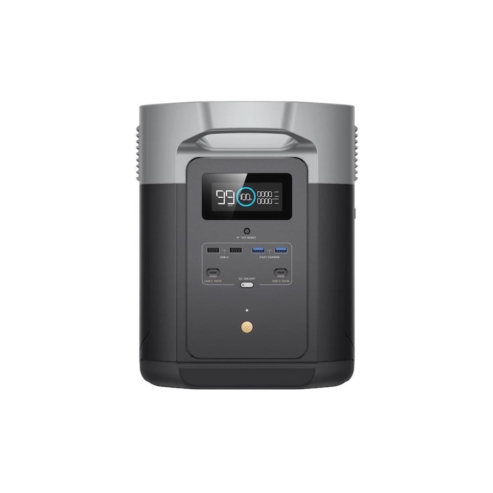 La Delta Max 2000 offre une capacité généreuse de 2 016 Wh permettant de faire fonctionner des appareils gros consommateurs (micro-ondes, congélateur, outils, etc.), tout en restant portable (~22 kg). Elle est équipée d’une batterie NCM (Nickel-Cobalt-Manganèse), avec une durée de vie estimée d’environ 800 cycles jusqu’à environ 80 % de la capacité.